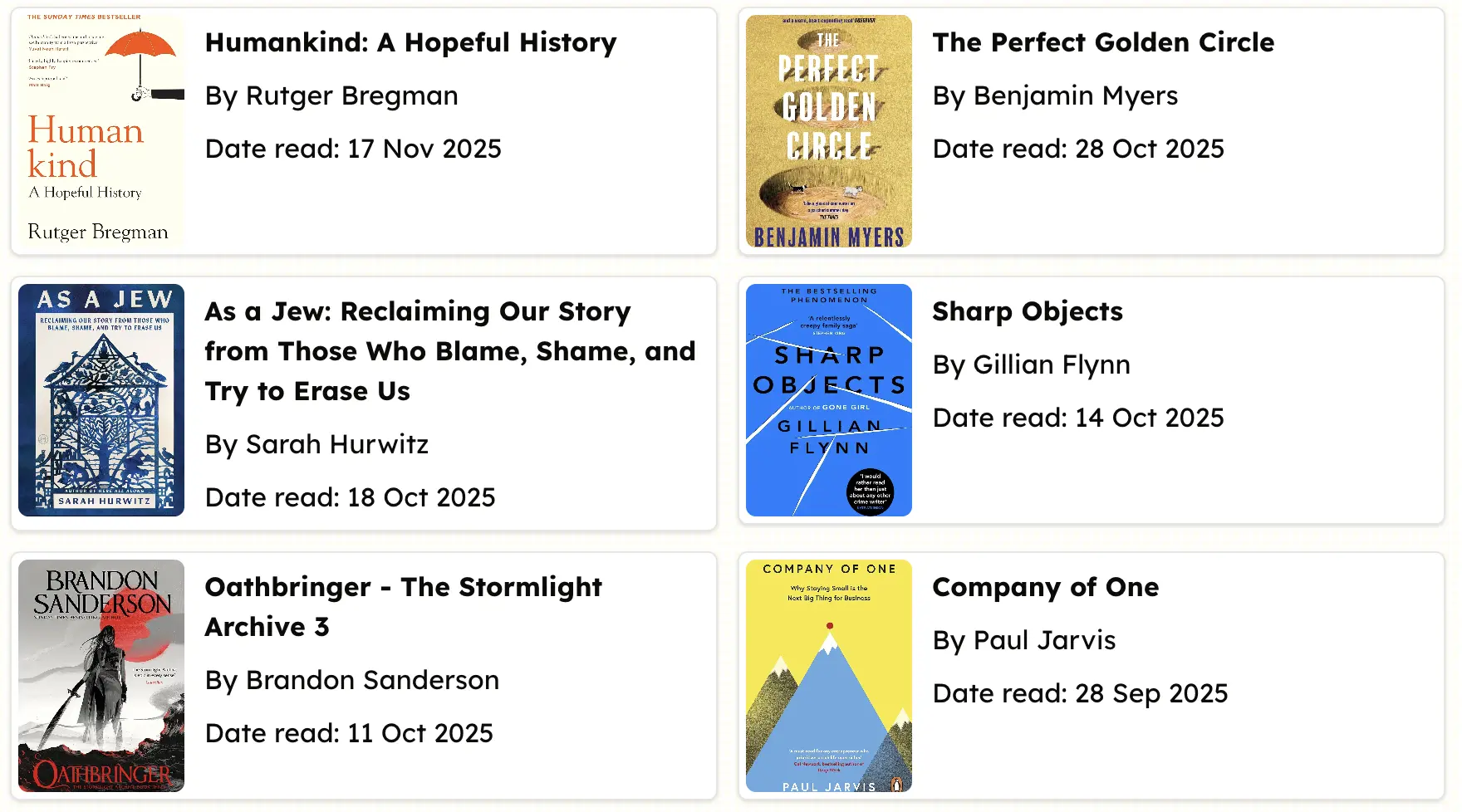 To keep things fresh, I stopped trying to grind through back-to-back productivity books. I started alternating: one non-fiction book, followed by one fiction book.
