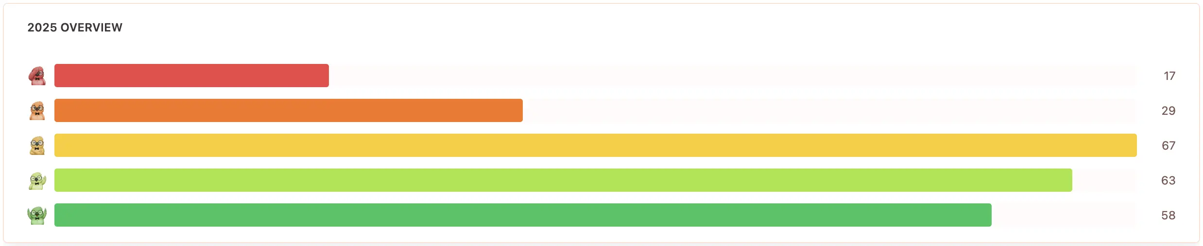 On the flip side, reviewing the -1 and -2 days showed me my triggers. Bad days almost always involved too much screen time, no exercise, or bad sleep. Seeing this data helped me catch myself before a bad day turned into a bad week.